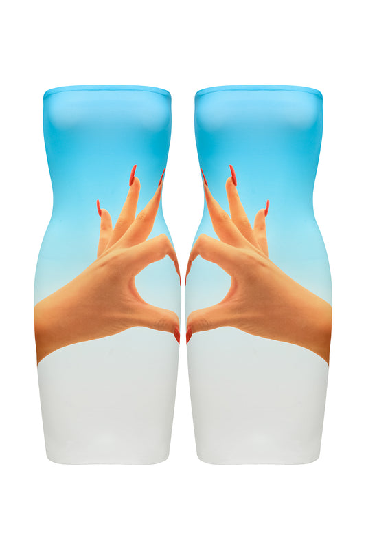Blue Bestie Heart Hands Tube Dress